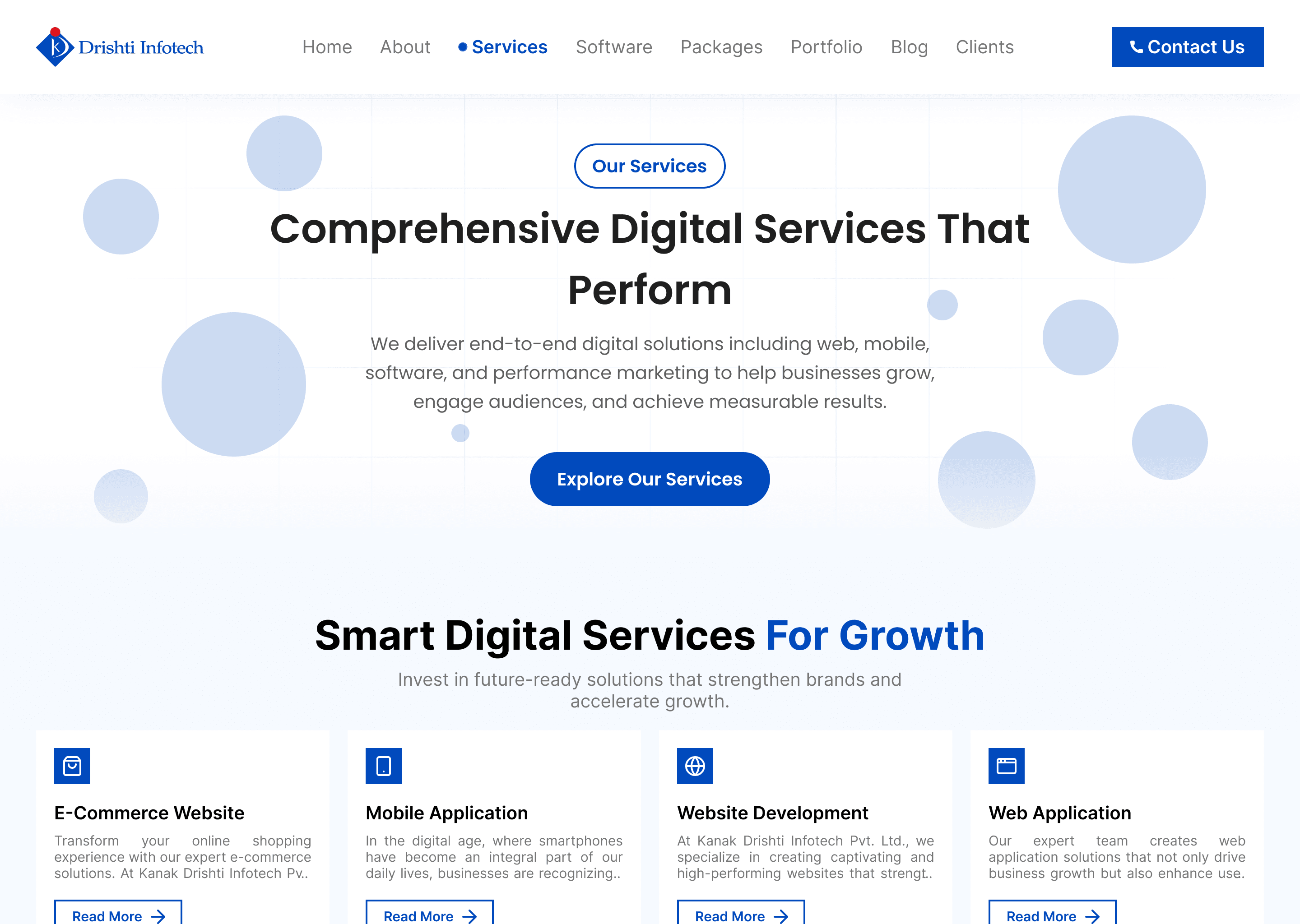 Kanak Drishti Infotech is an IT services and digital solutions company. The existing website contained extensive content but lacked clear structure, visual hierarchy, and modern UI patterns.