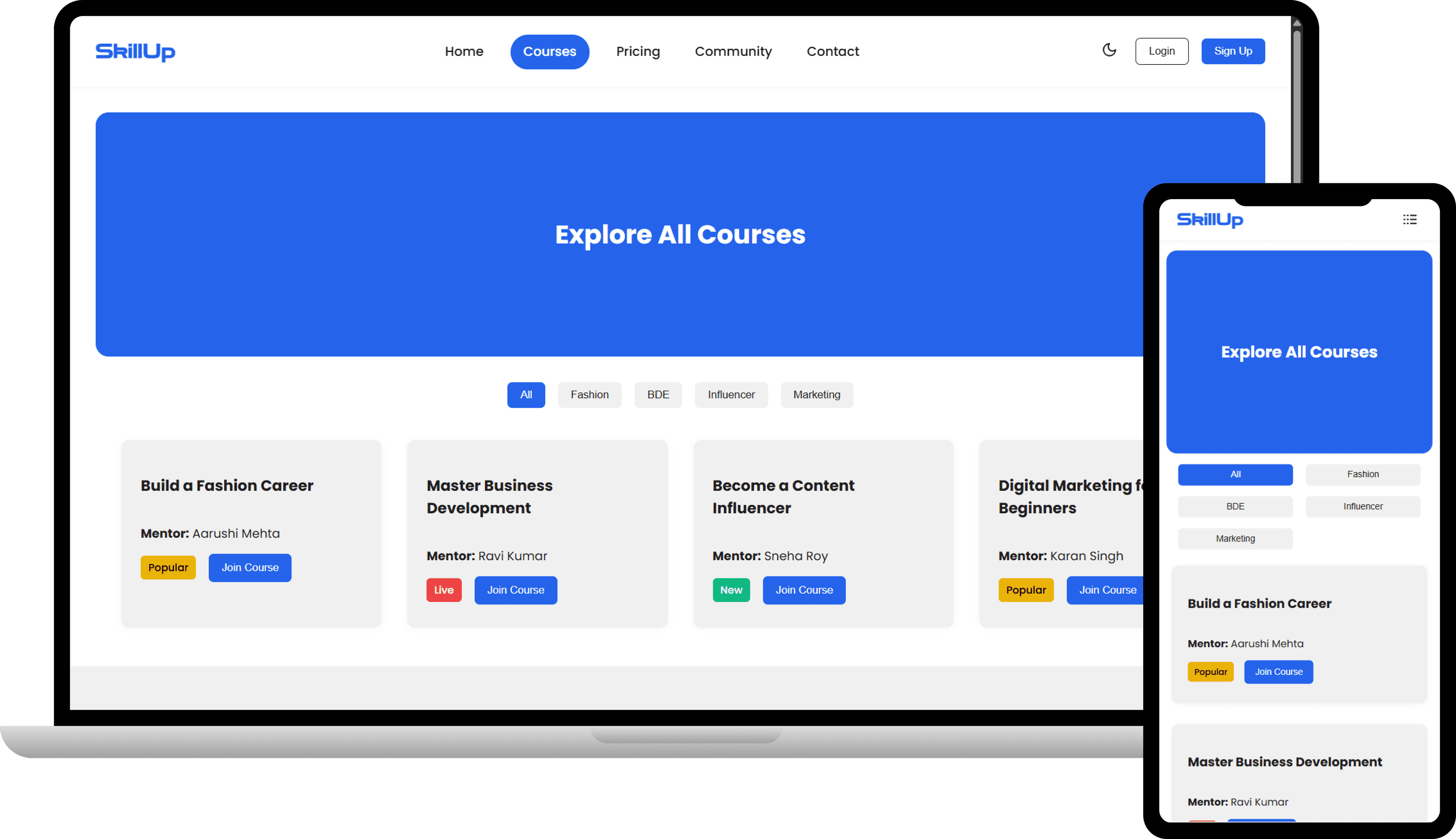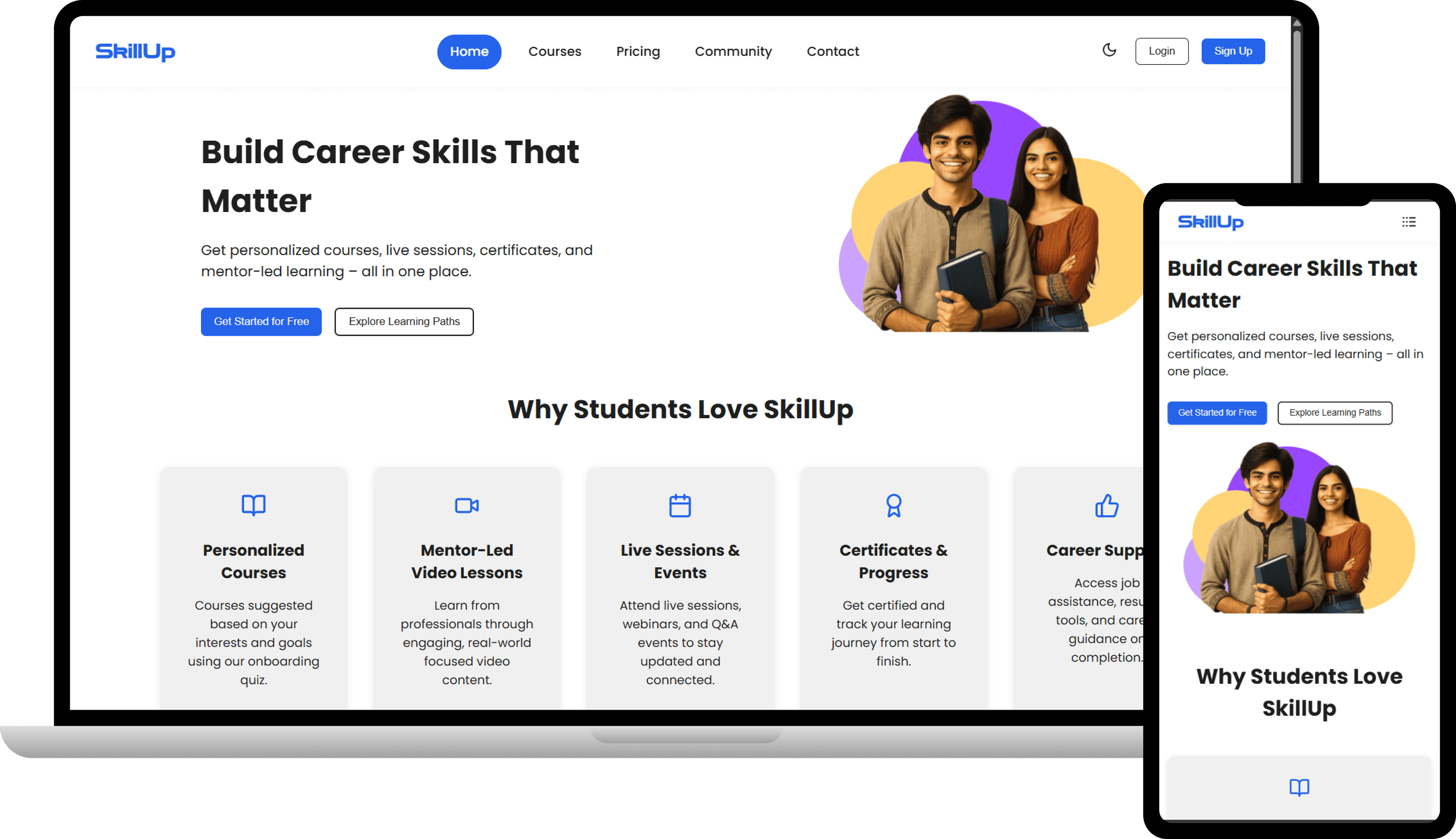 SkillUp is a frontend-focused educational platform designed to help learners explore and access skill-based courses in a clean and structured way.