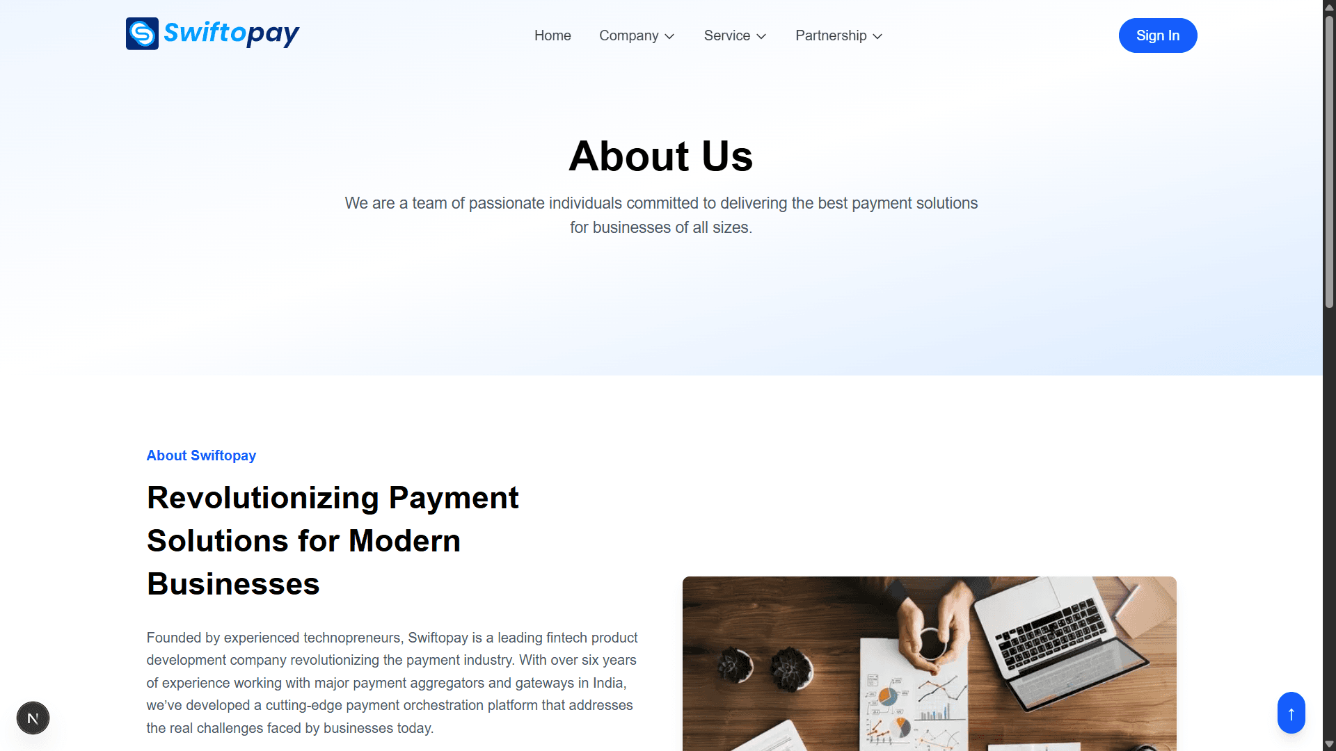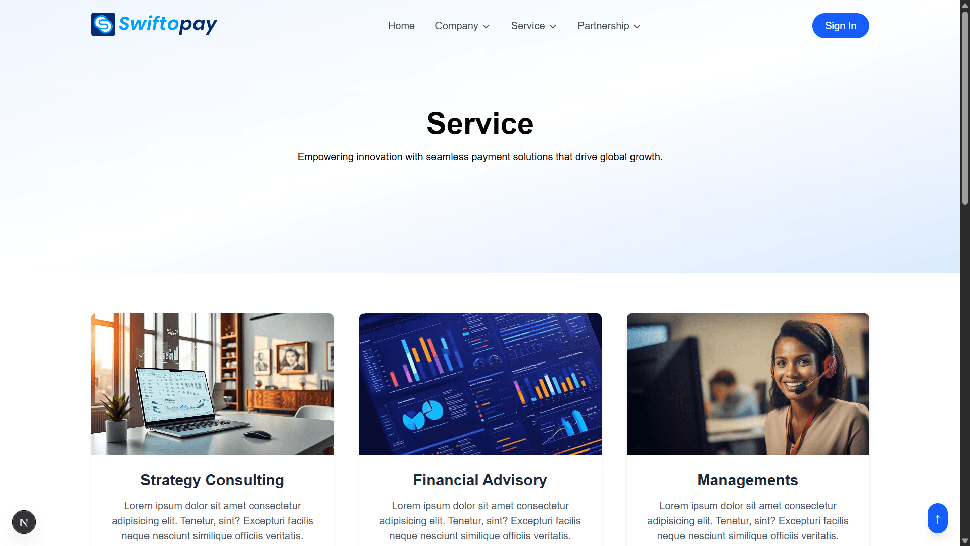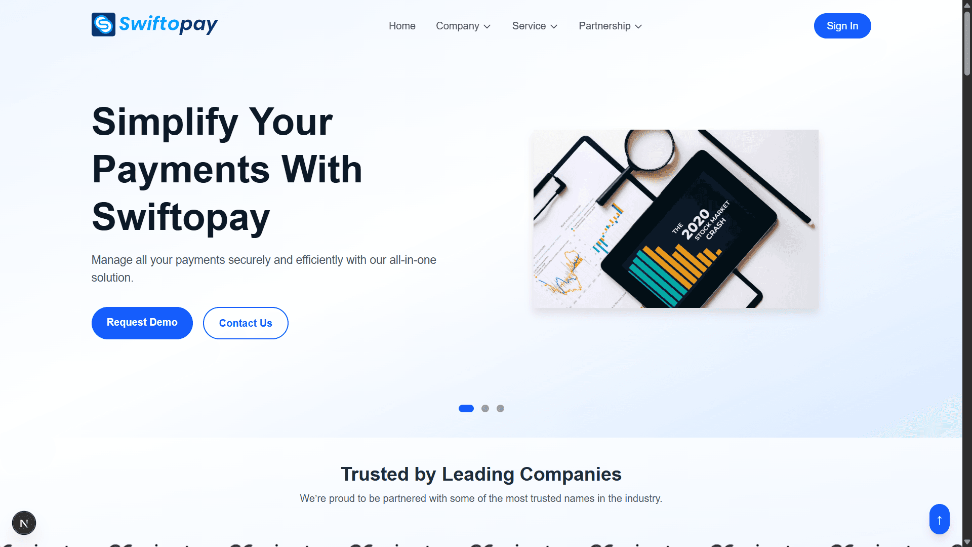 SwiftoPay is a fintech platform offering digital payment solutions for modern businesses. The objective of this project was to rebuild and improve the existing SwiftoPay website UI, while keeping the brand identity intact and improving clarity, structure, and overall visual quality.